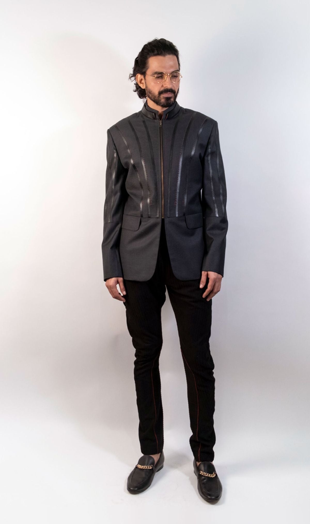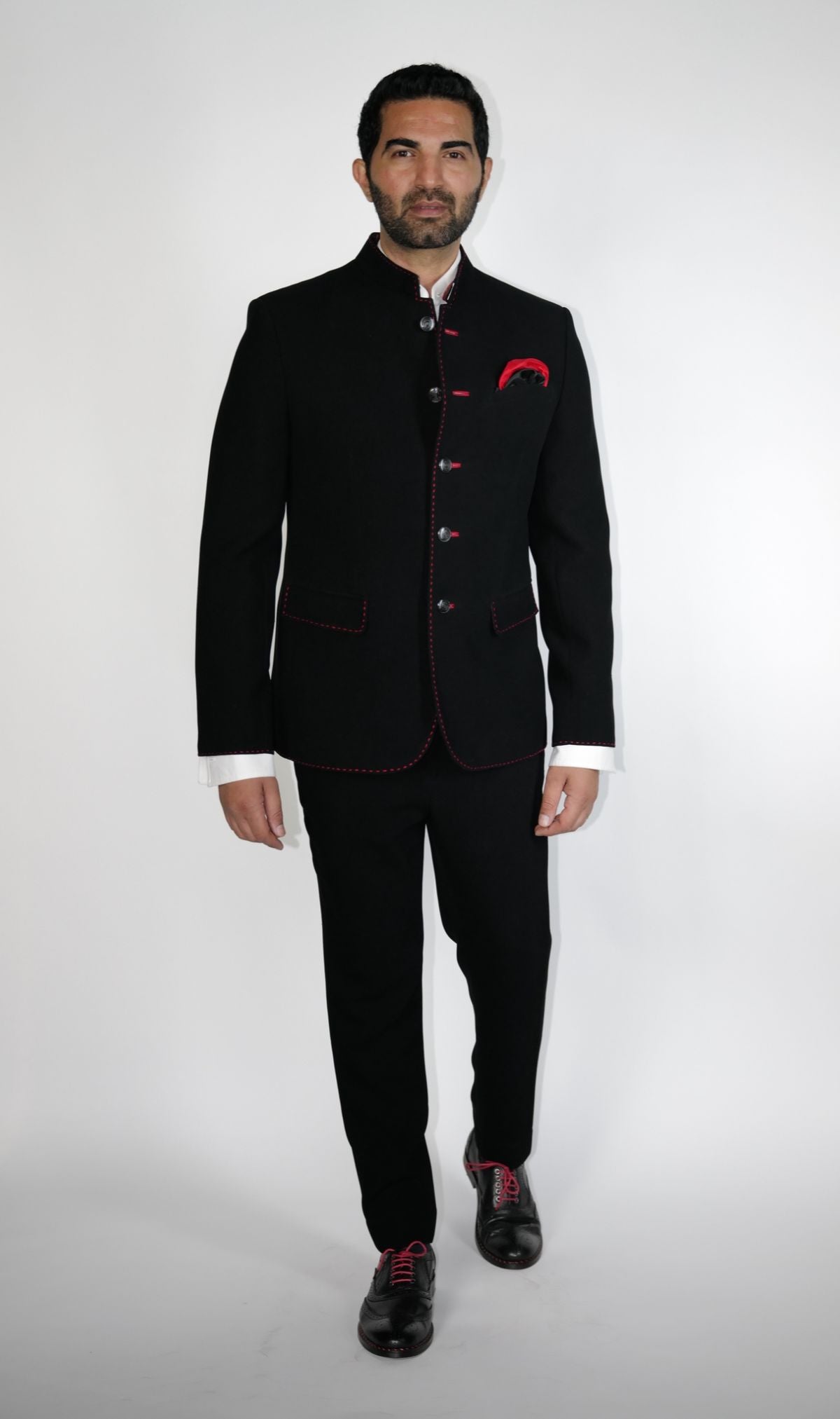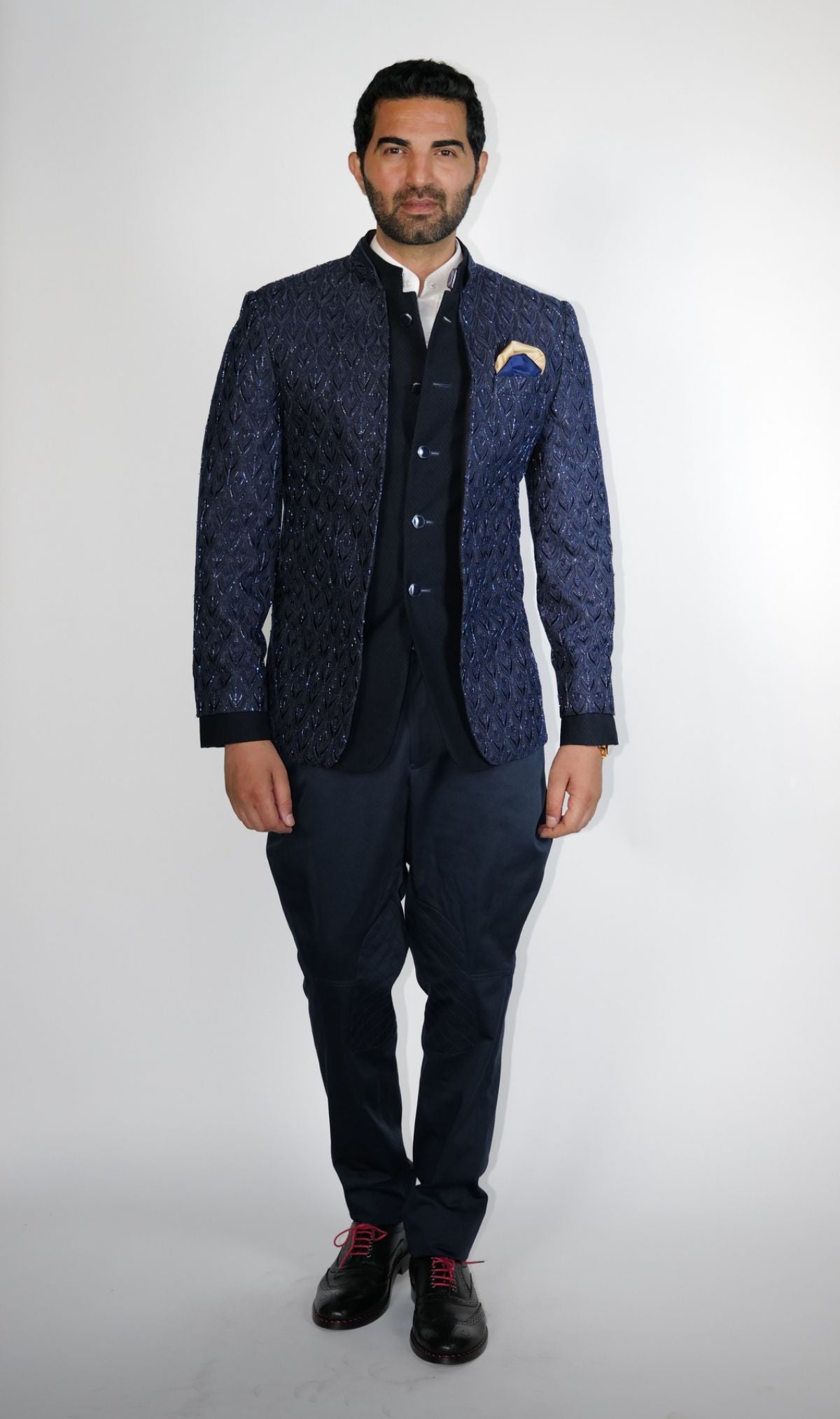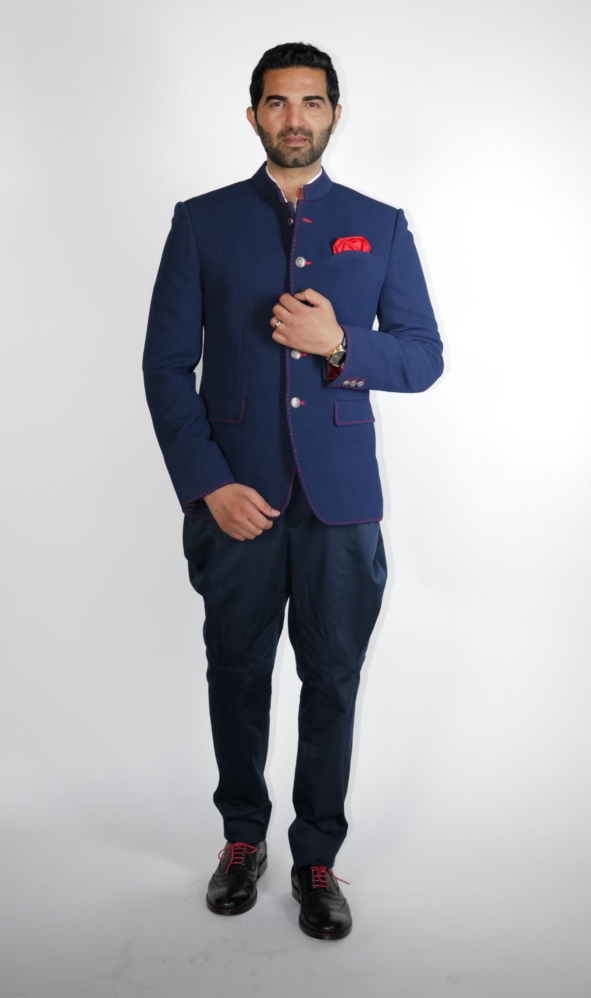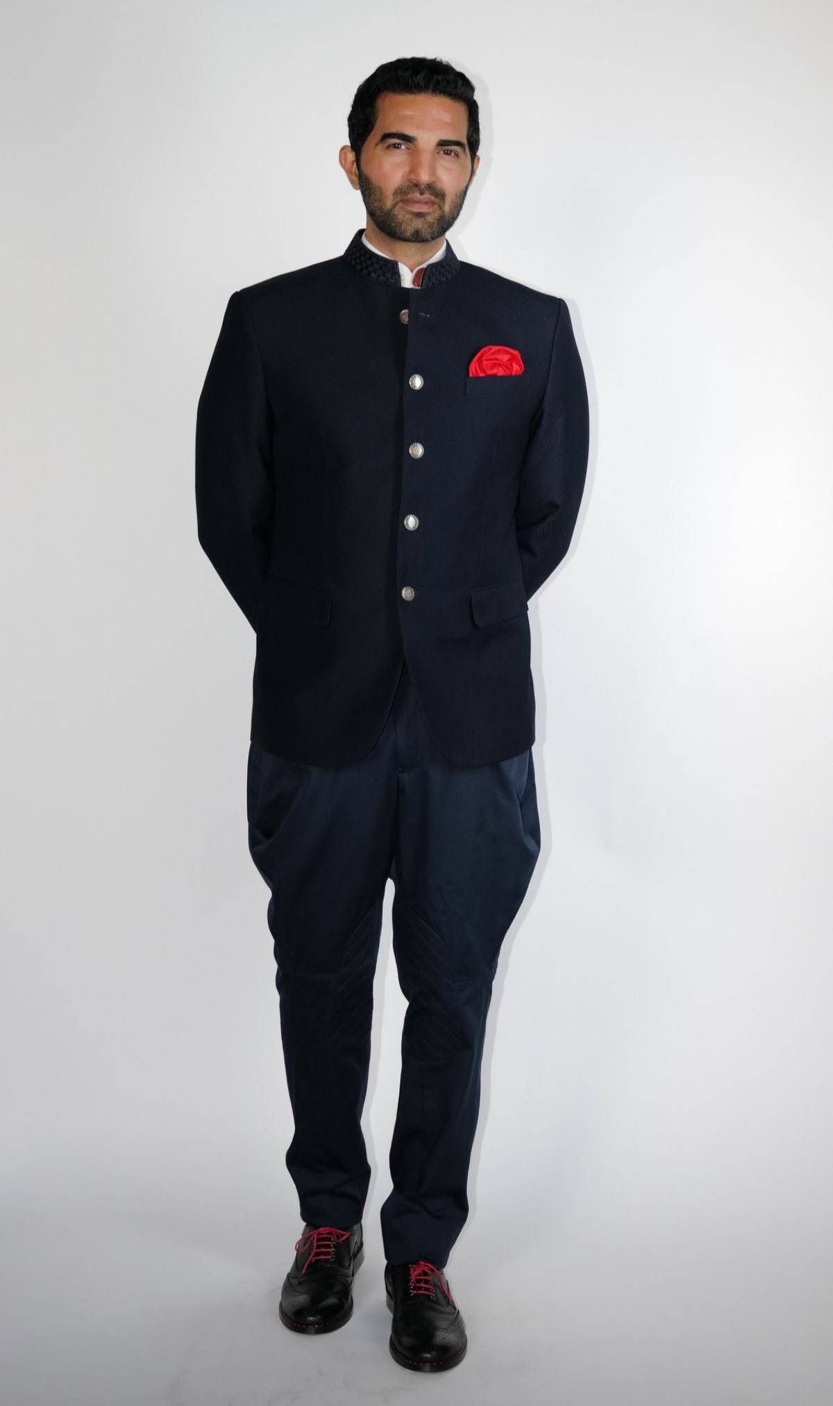 Navy Blue Rope Crepe Red Stitch Bundgala
