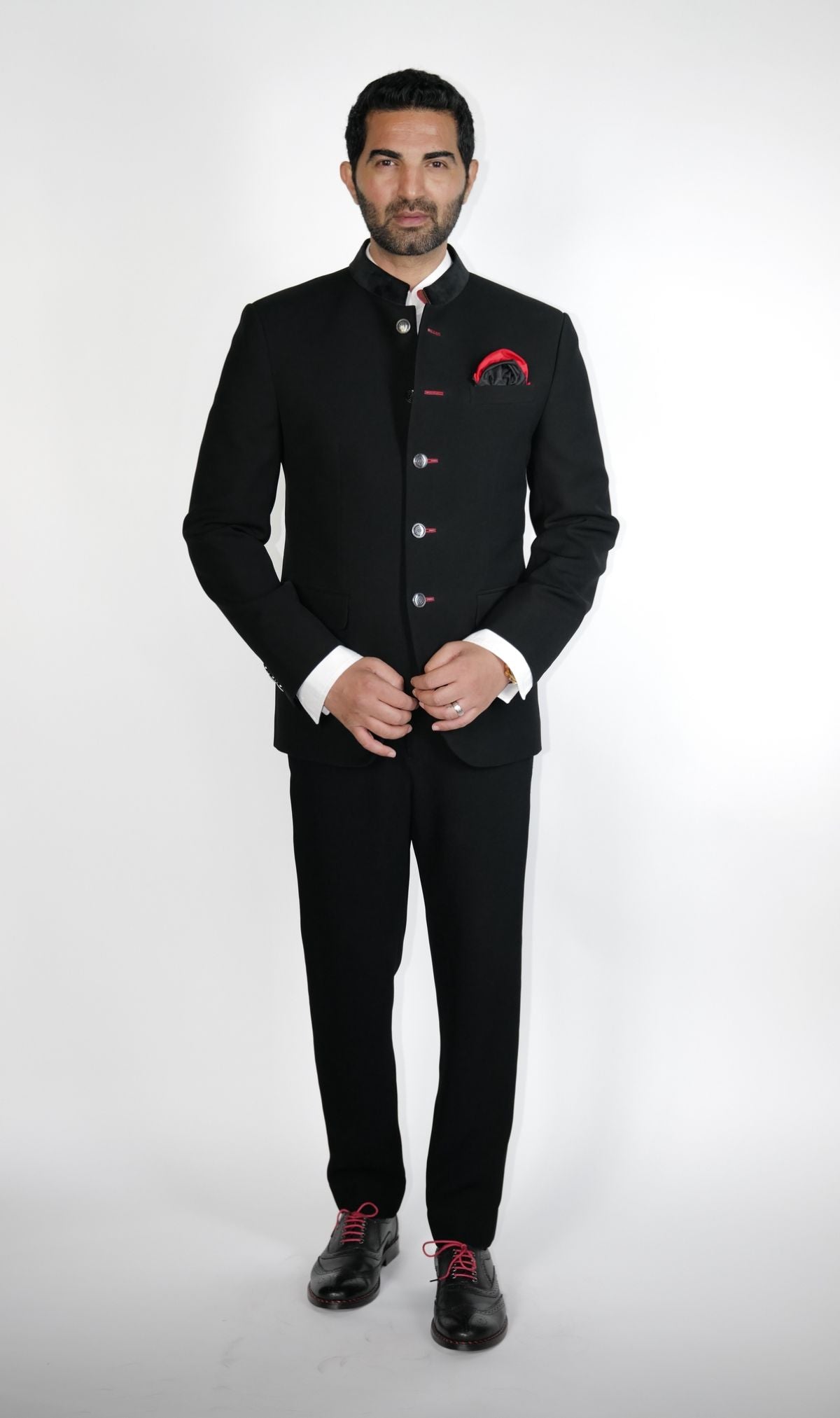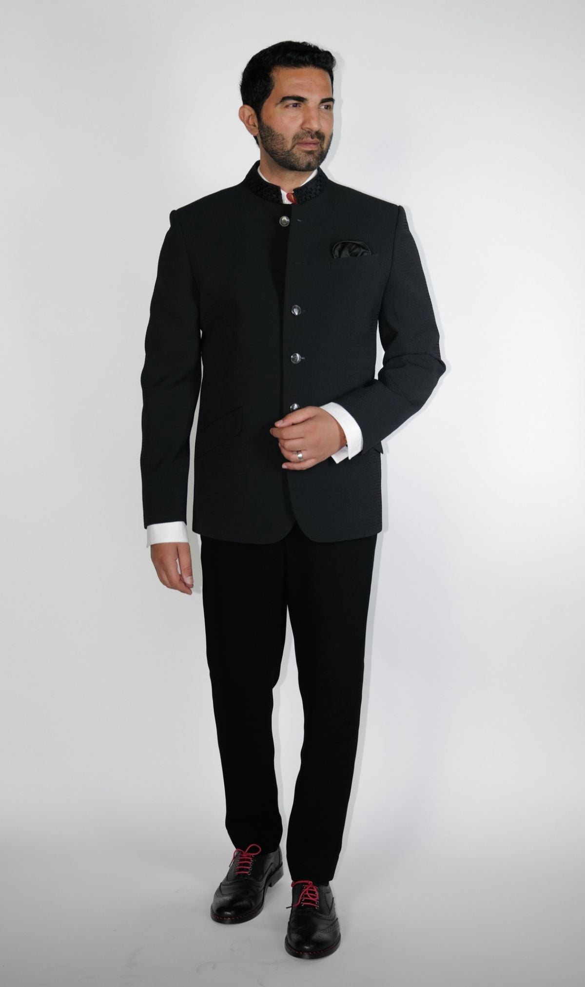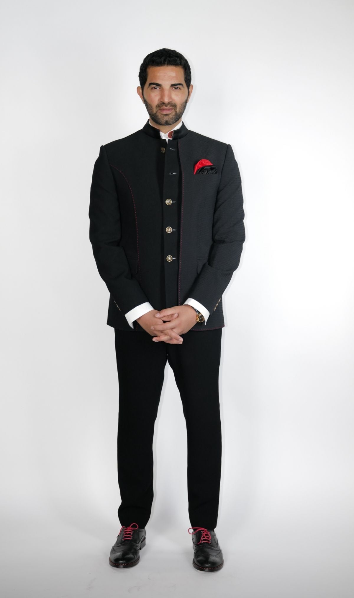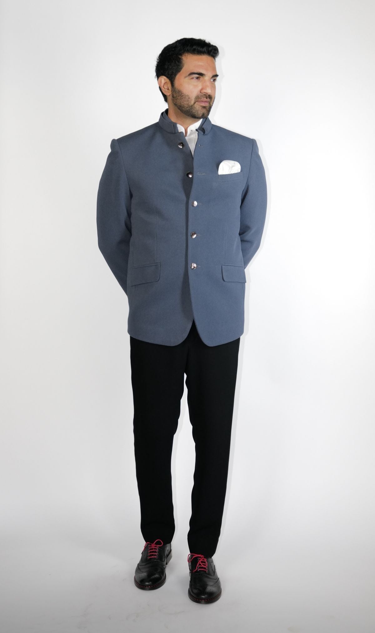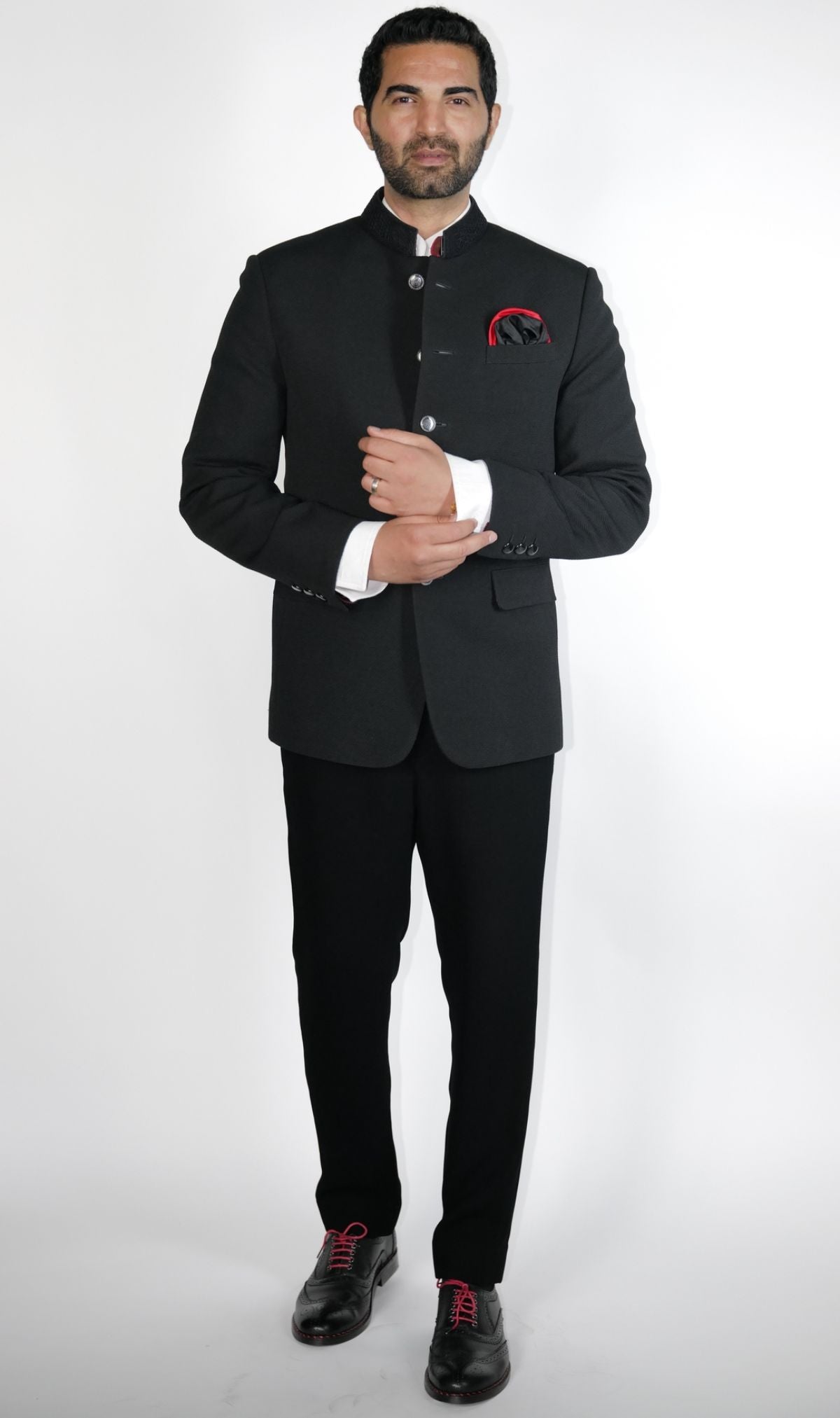 Navy Blue Rope Crepe Red Stitch Bundgala