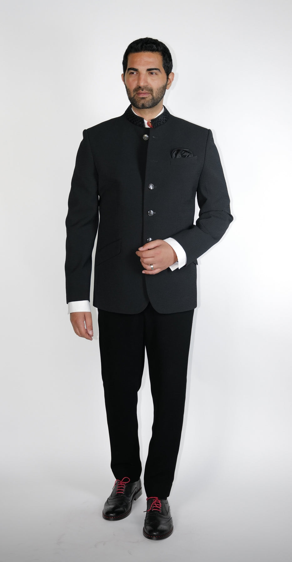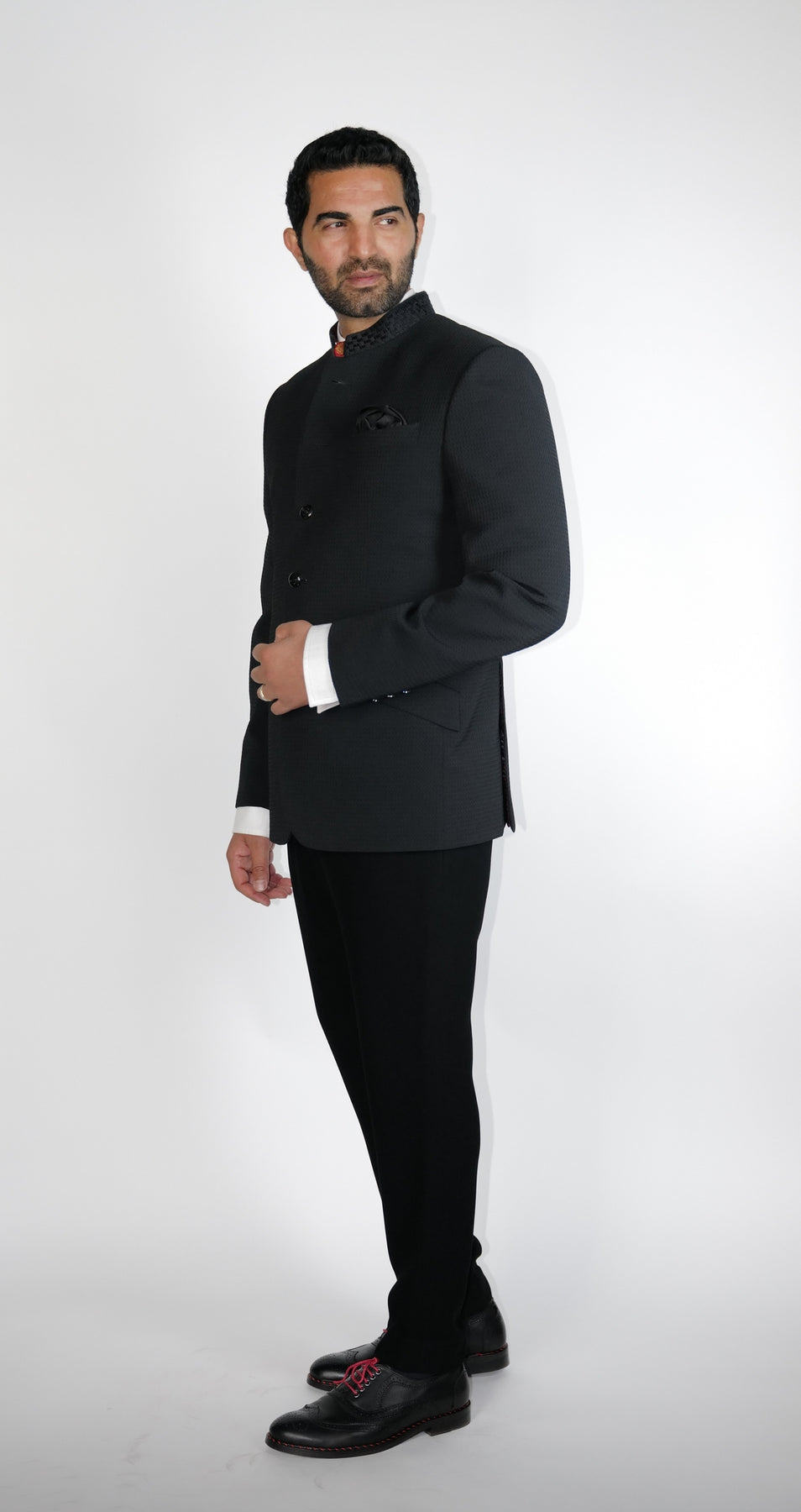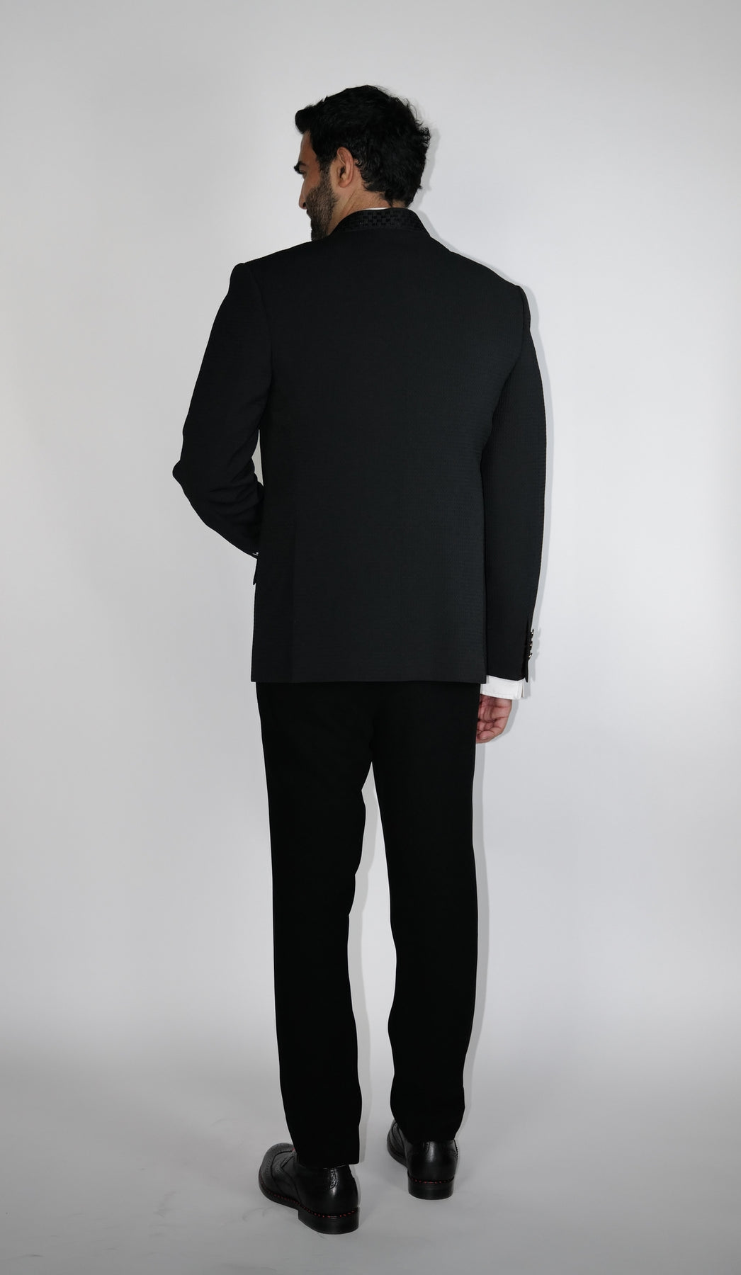 Regular price Rs. 85,000Black waffle textured fabric Bundgala with resham checks embroidered collar.