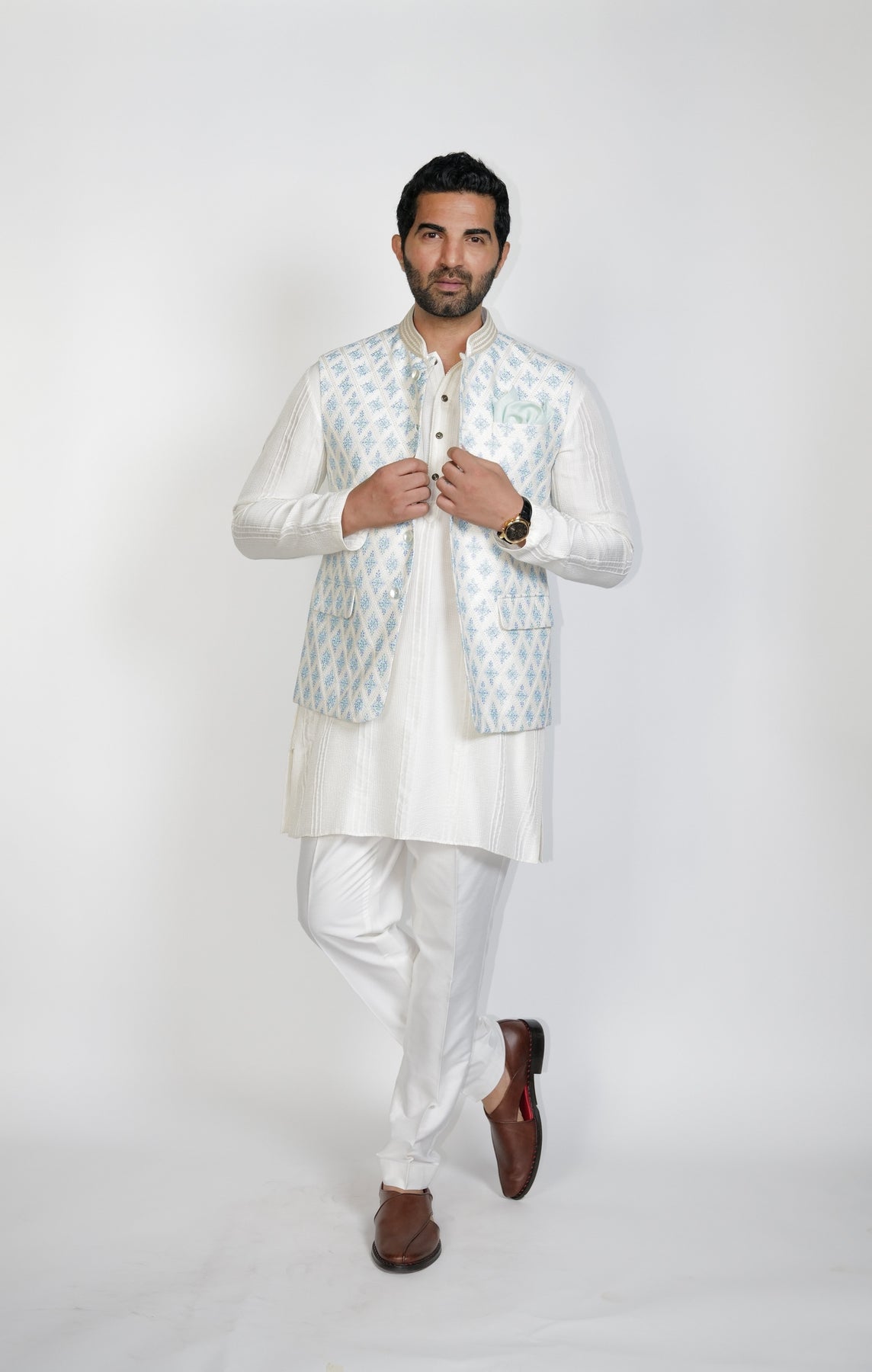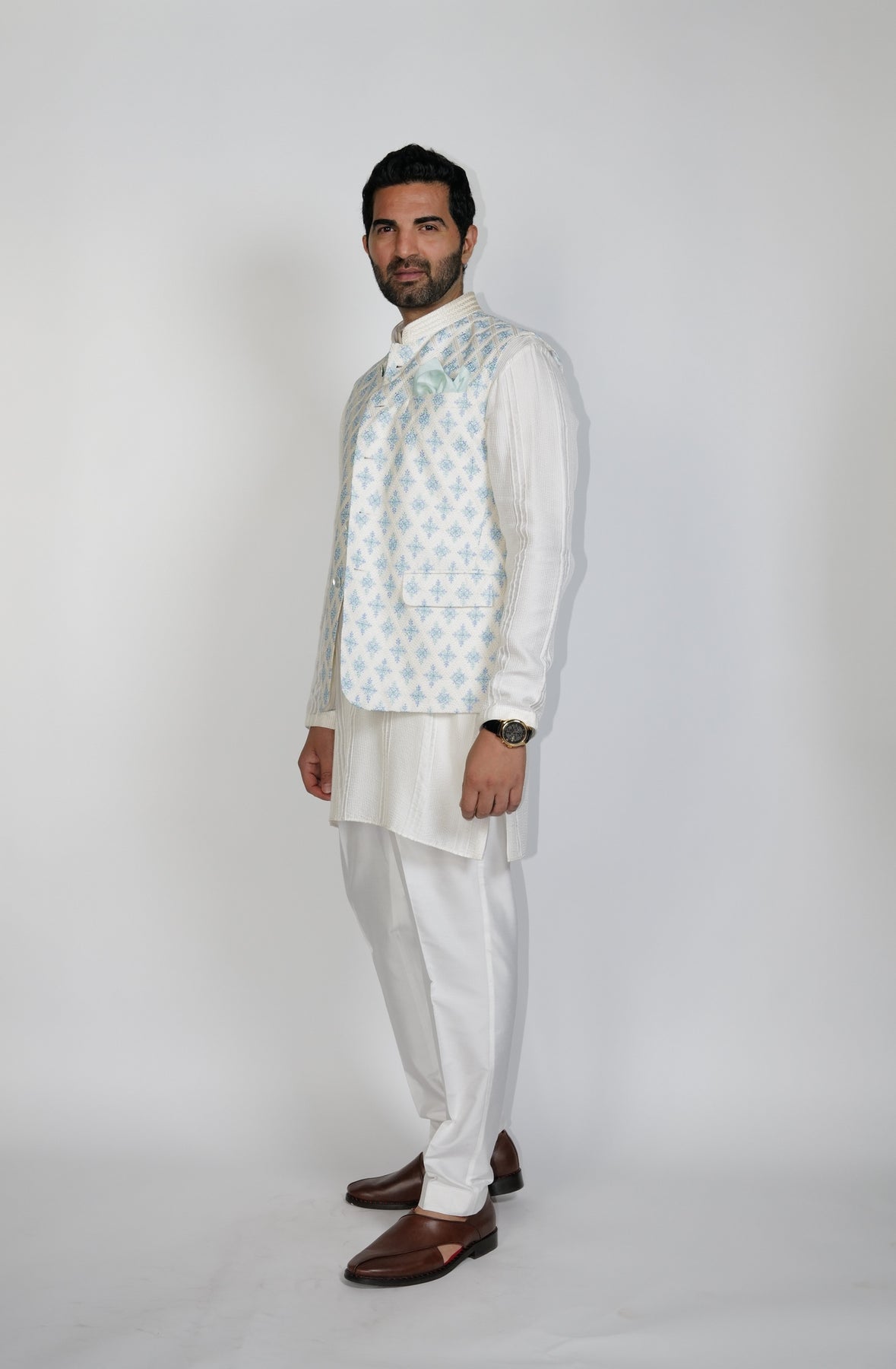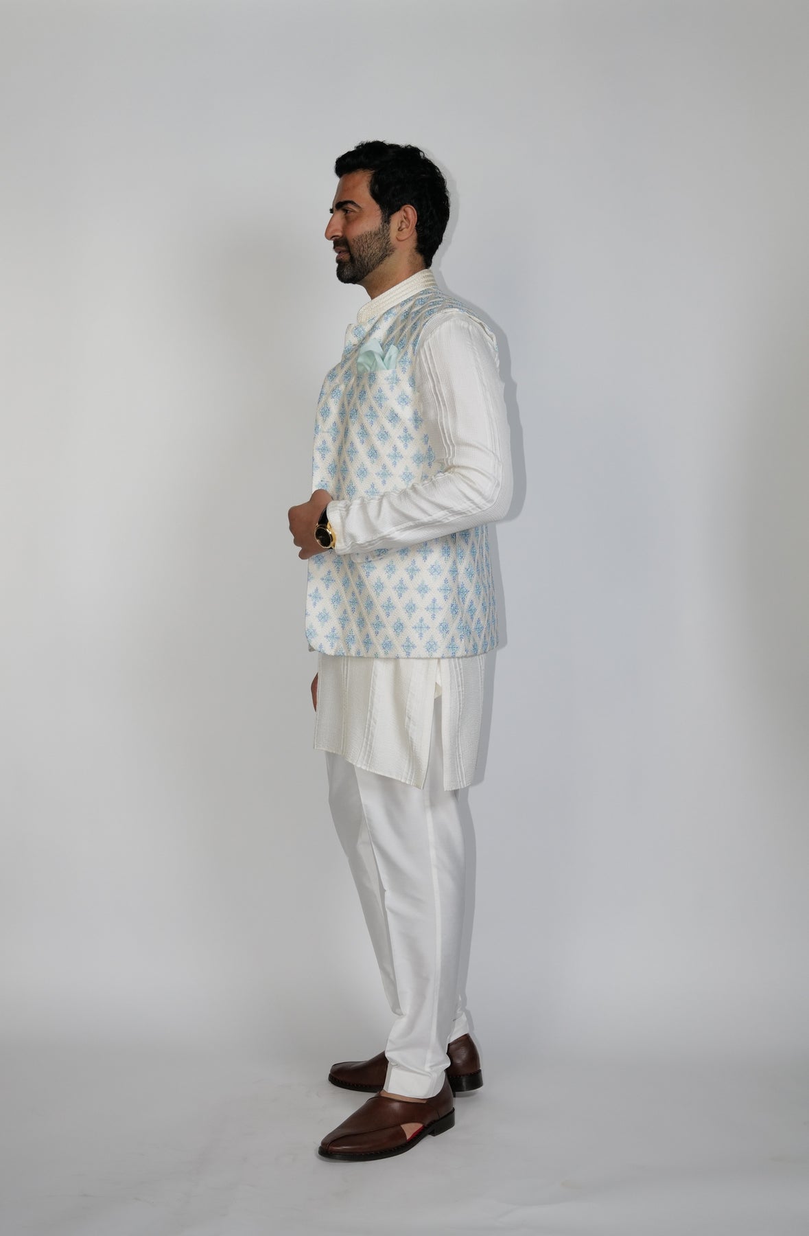 Turqoise Ombre tones Big Butta all over resham embroidered Bundi