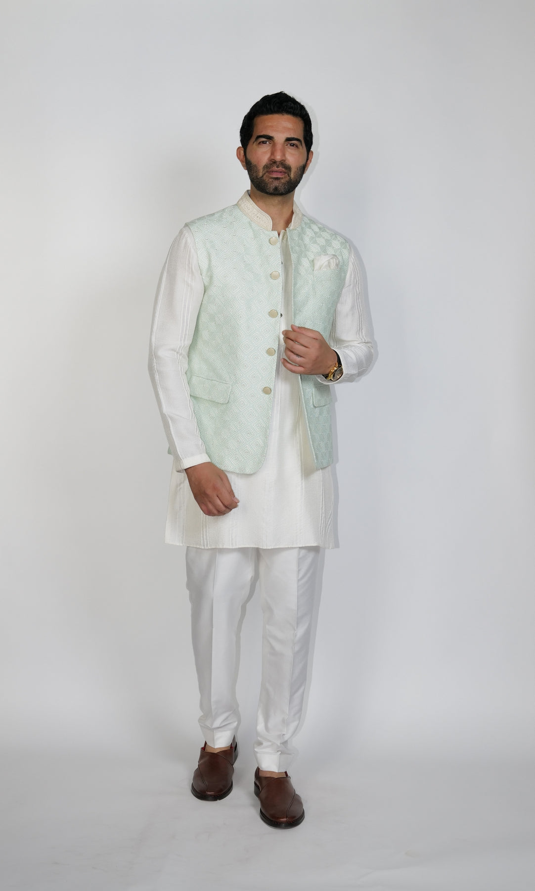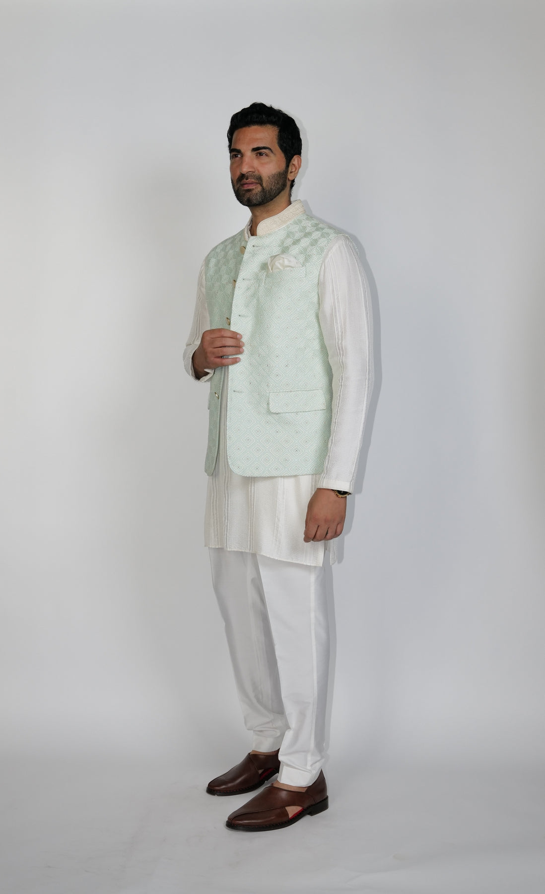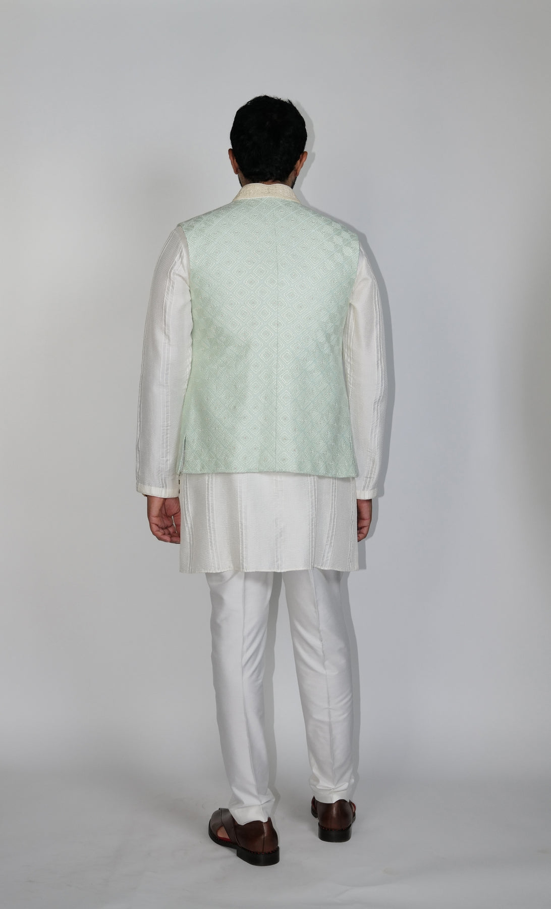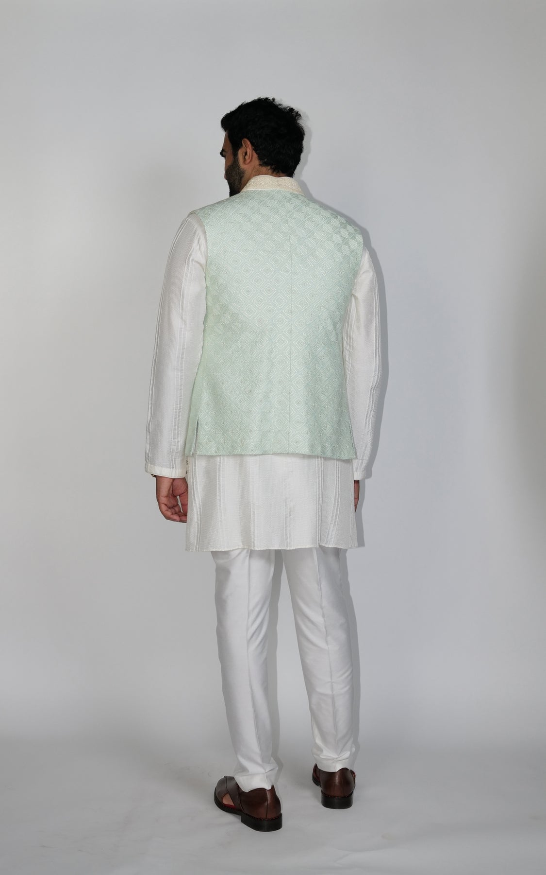 Regular price Rs. 55,000Green square Jacquard all-over resham Phulkari emroidered Bundi.