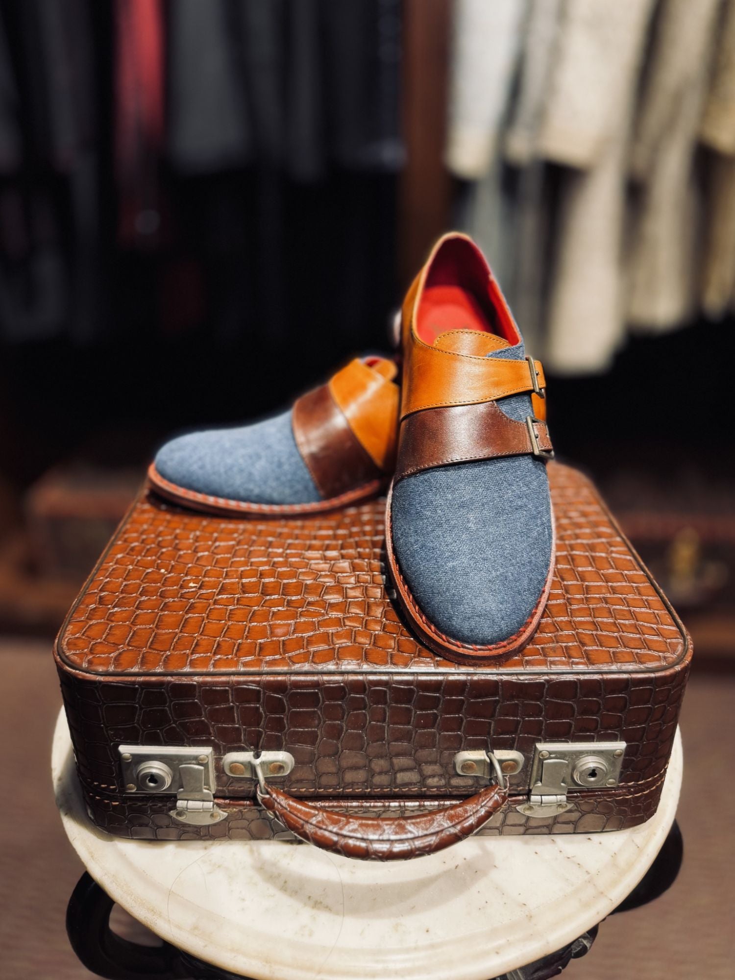 Denim Double Monk Strap Shoes