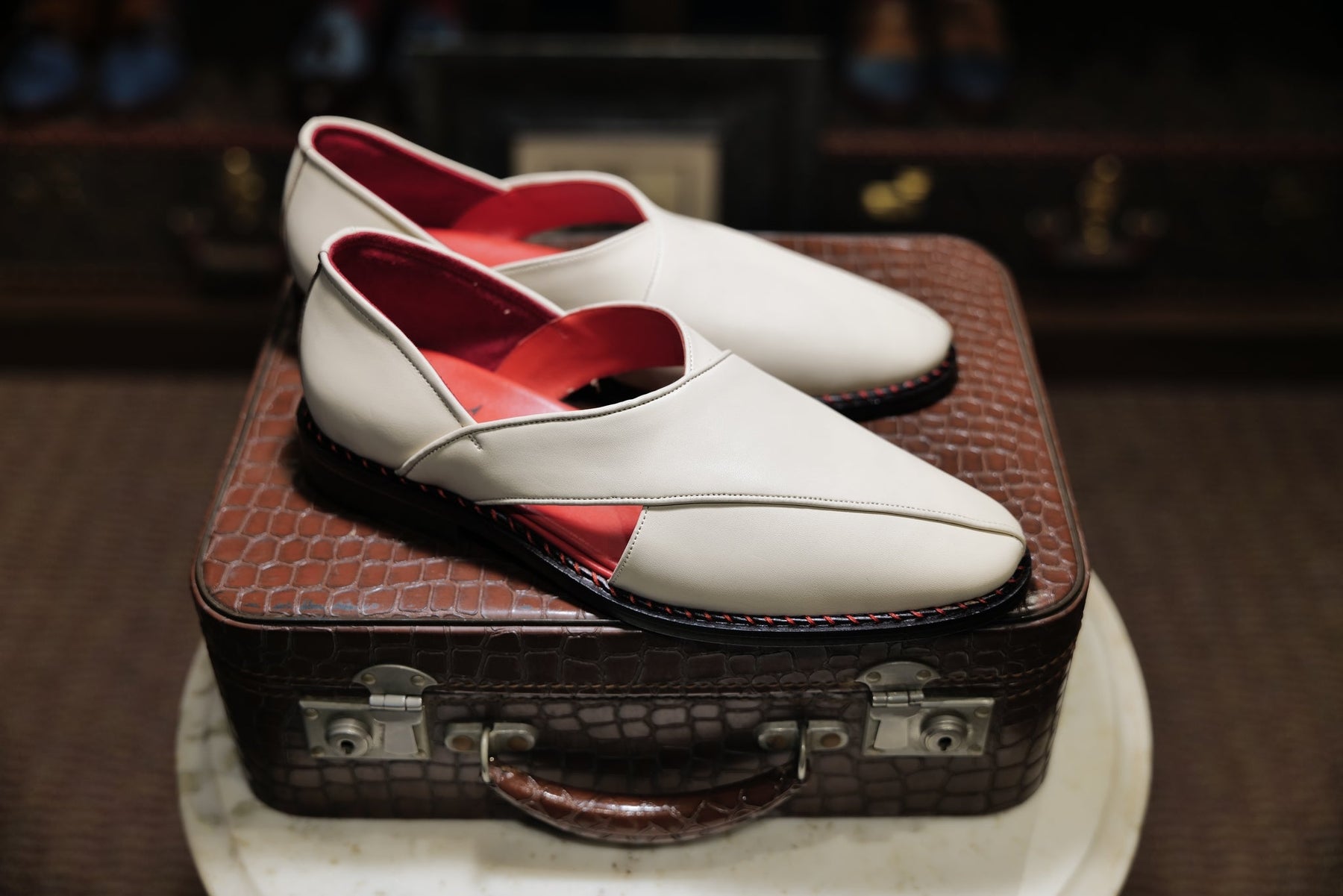 Regular price Rs. 20,000These are pure leather handcrafted Ivory Peshawaris with signature Arjun Khanna detailing.
