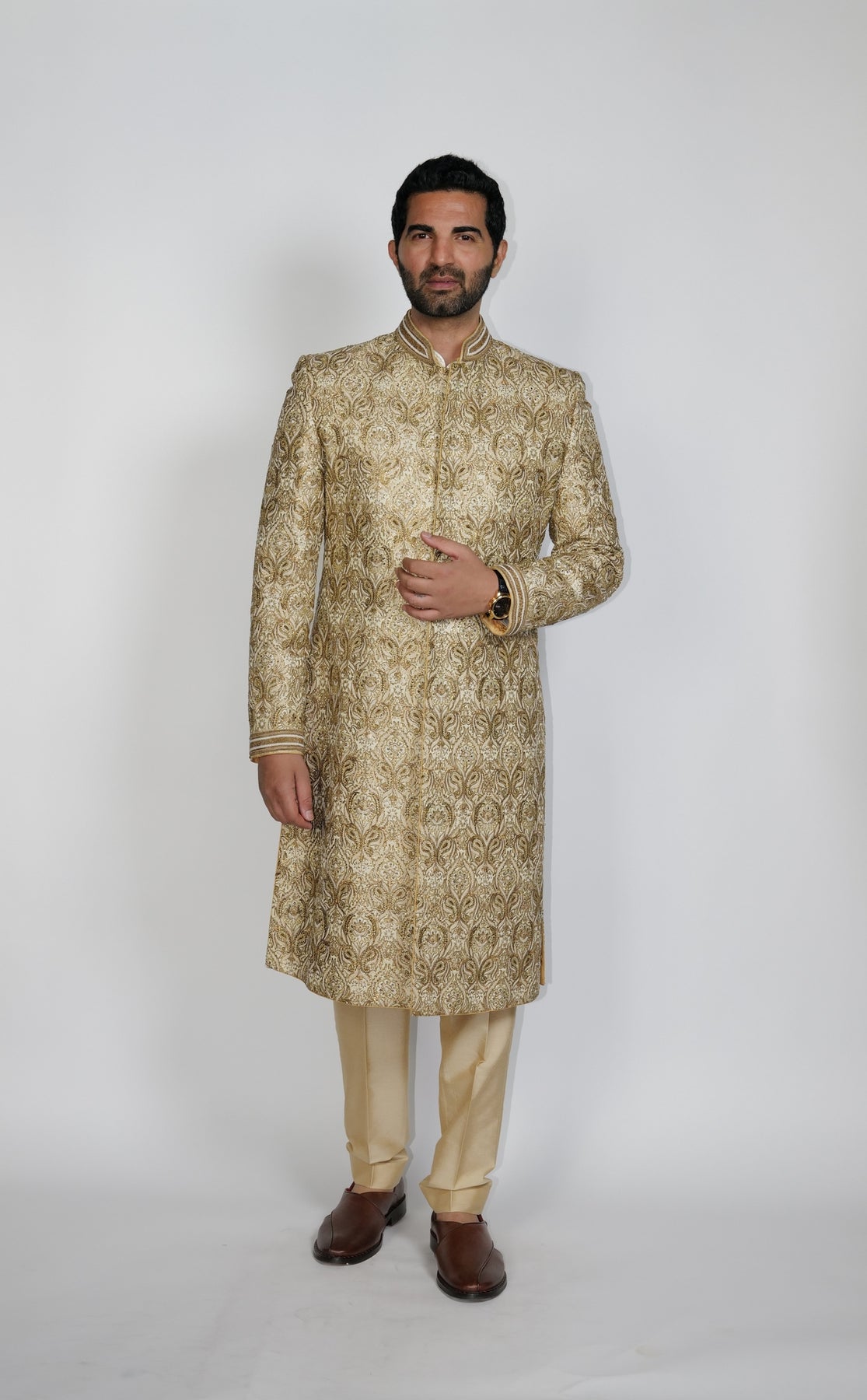 Gold & Pearl Paisley Sherwani Set