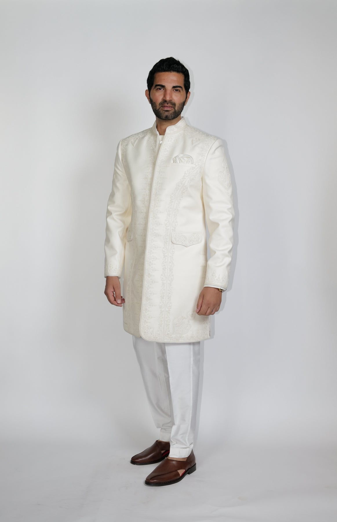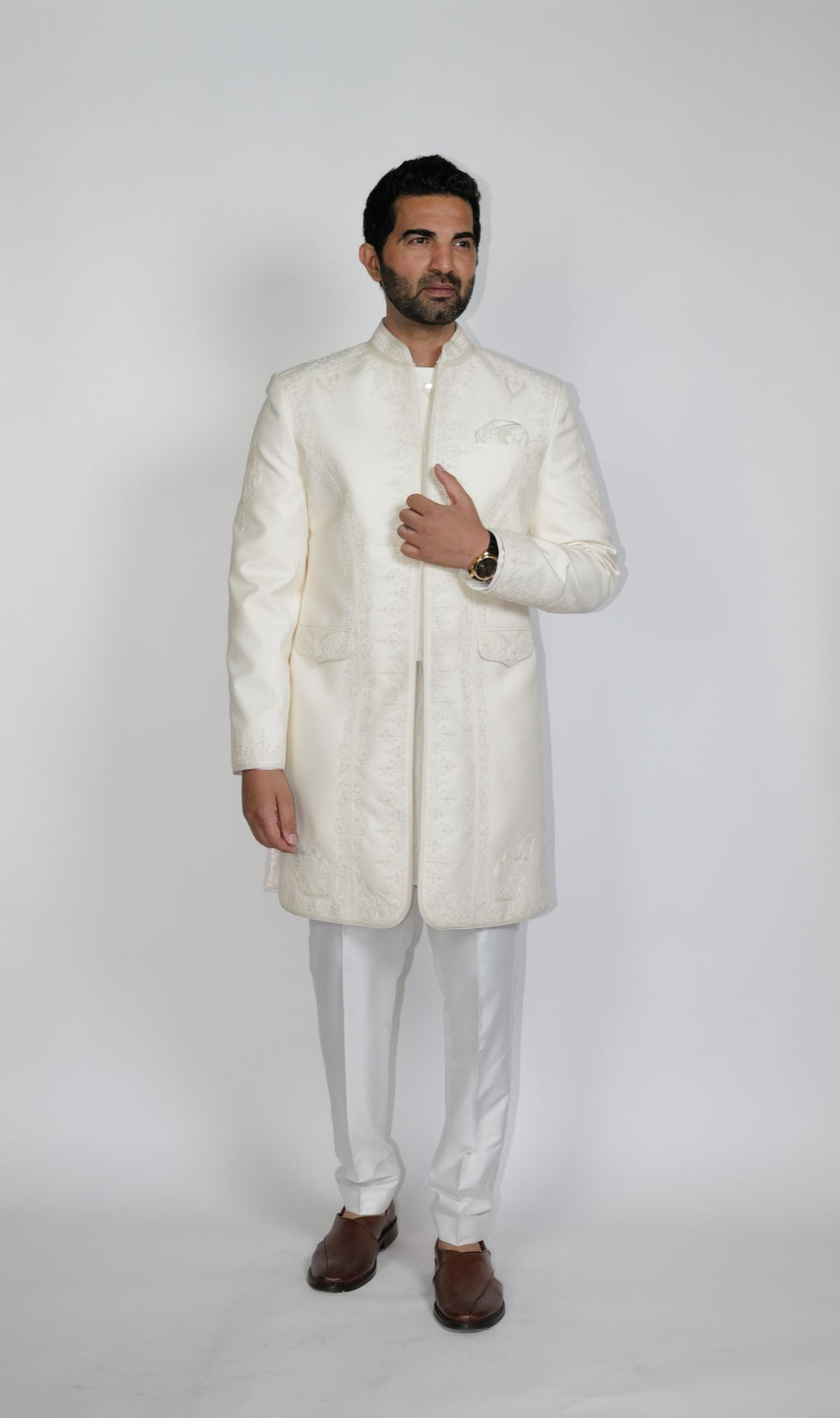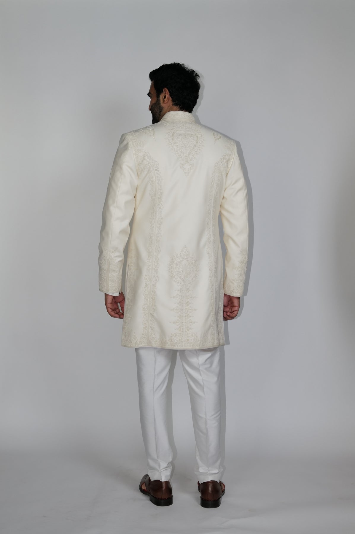 Ivory Sherwani with Morocco inspired dori work.